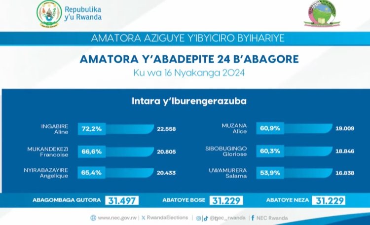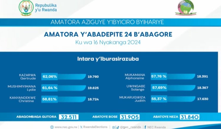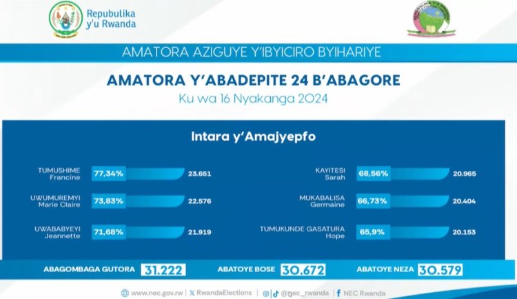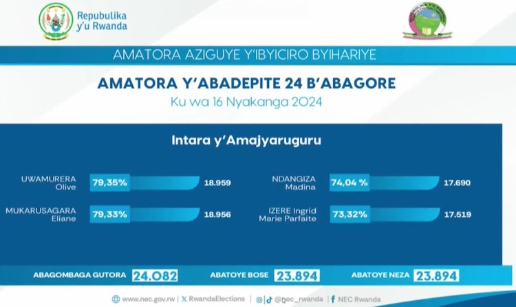 Ni amajwi yashyizwe hanze na Komisiyo y’Igihugu y’Amatora, agaragaza ko hamaze kubarurwa amawi 98,07% by’abatoye bangana na 8 895 739 mu Banyarwanda 8 907 876 batoye mu guhe abari bemerwe gutora bose ari 9 071 157.