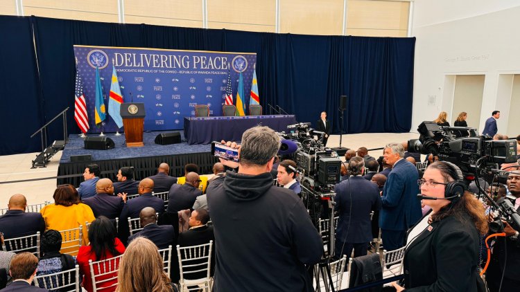 Mu ngoro y'umukuru w'igihugu cya Leta Zunze Ubumwe za America, Perezida Paul Kagame w’u Rwanda, na Felix Tshisekedi; bashyize umukono ku masezerano y’amahoro ya burundu, mu muhango wari ukurikiwe n’isi yose kuko wanyuraga imbona nkubona ku mashene y'ibitangazamakuru bikomeye.